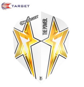 Najnowsza seria piórek do darta Power Star w kolorze biało-złotym, których obecnie używa Phil Taylor .