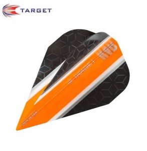 Piórka do darta z nowej serii Vision RVB ( Raymond van Barneveld ), w kolorze czarno-pomarańczowym. Dzięki cyfrowemu nadrukowi piórka Vision cechują się świeżym, unikatowym designem naniesionym bezpośrednio na transparentne tło.