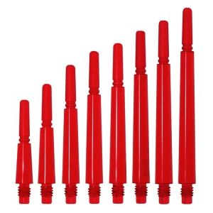 Shafty Cosmo Darts Fit Gear Normal Spinning w kolorze czerwonym, to ewolucja poprzedniej wersji shaftów. W tej wersji głowica shafta jest obrotowa. Dzięki funkcji "spinning" piórka będą się delikatnie obracać gdy w tarczy wpadną na siebie. Może to znacząco wydłużyć ich żywotność. W produkcji shaftów użyto wysokiej jakości żywicy poliwęglanowej.