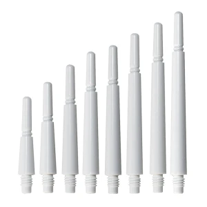 Shafty Cosmo Darts Fit Gear Normal Spinning w kolorze białym, to ewolucja poprzedniej wersji shaftów. W tej wersji głowica shafta jest obrotowa. Dzięki funkcji "spinning" piórka będą się delikatnie obracać gdy w tarczy wpadną na siebie. Może to znacząco wydłużyć ich żywotność. W produkcji shaftów użyto wysokiej jakości żywicy poliwęglanowej.